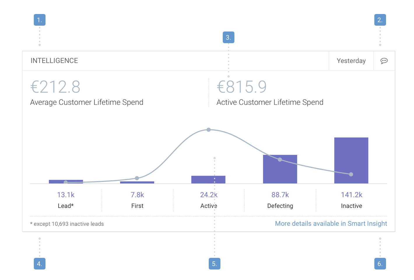 - Have the highest prominence in the widget, with their meaning below. A breakdown of the total may be provided below that.