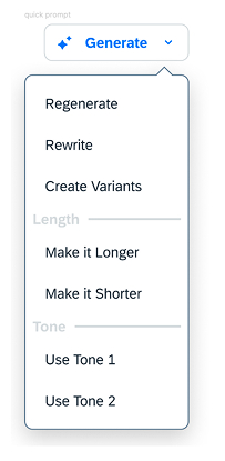 If necessary, organize prompts into submenus for easier navigation and to minimize visual clutter. Group quick prompts based on their purpose or the task they build upon.