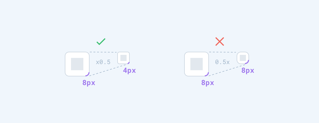 Small corner radius should only be used in specific cases, like when an element with default corner radius is "scaled down" in size, e.g. AC nodes in sidebar, which are just smaller views of the regular sized nodes.
