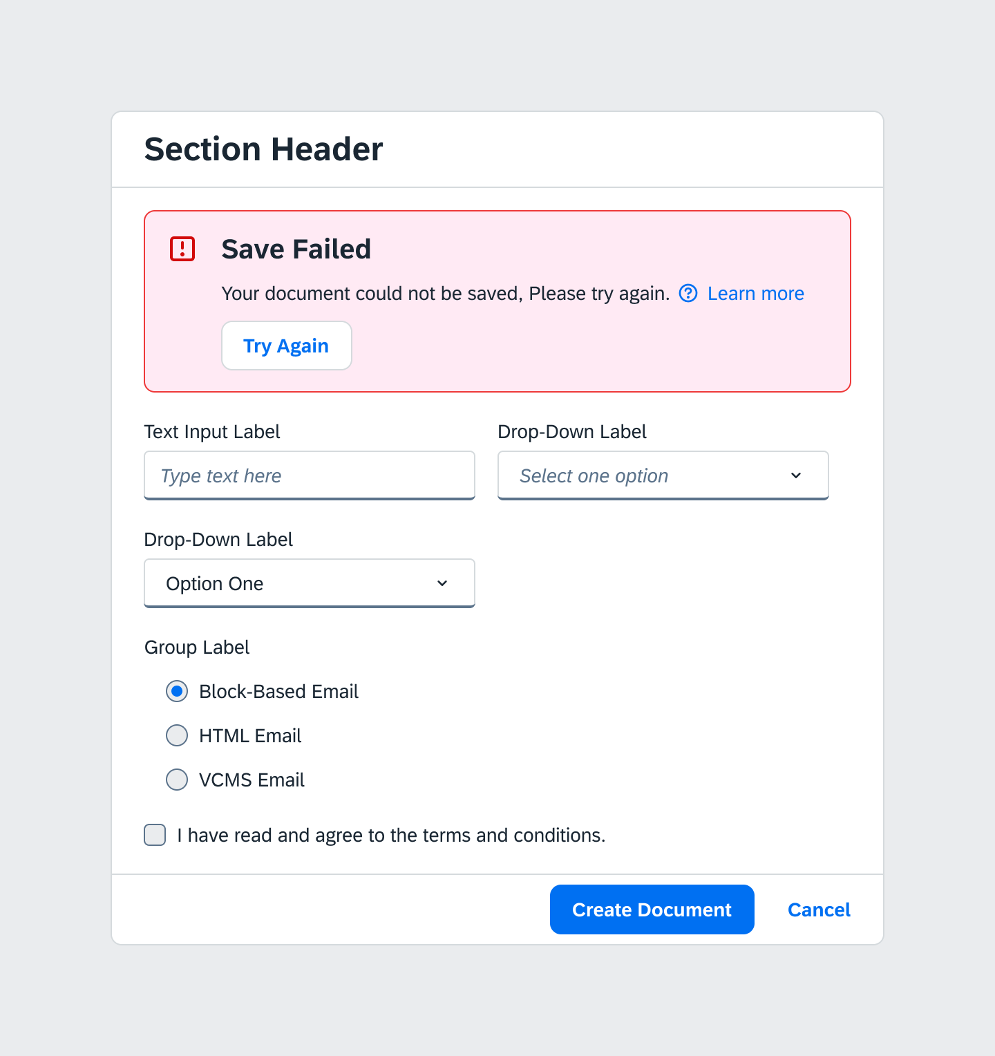 - E.g. Check "I have read and agree to the terms and conditions" to continue.